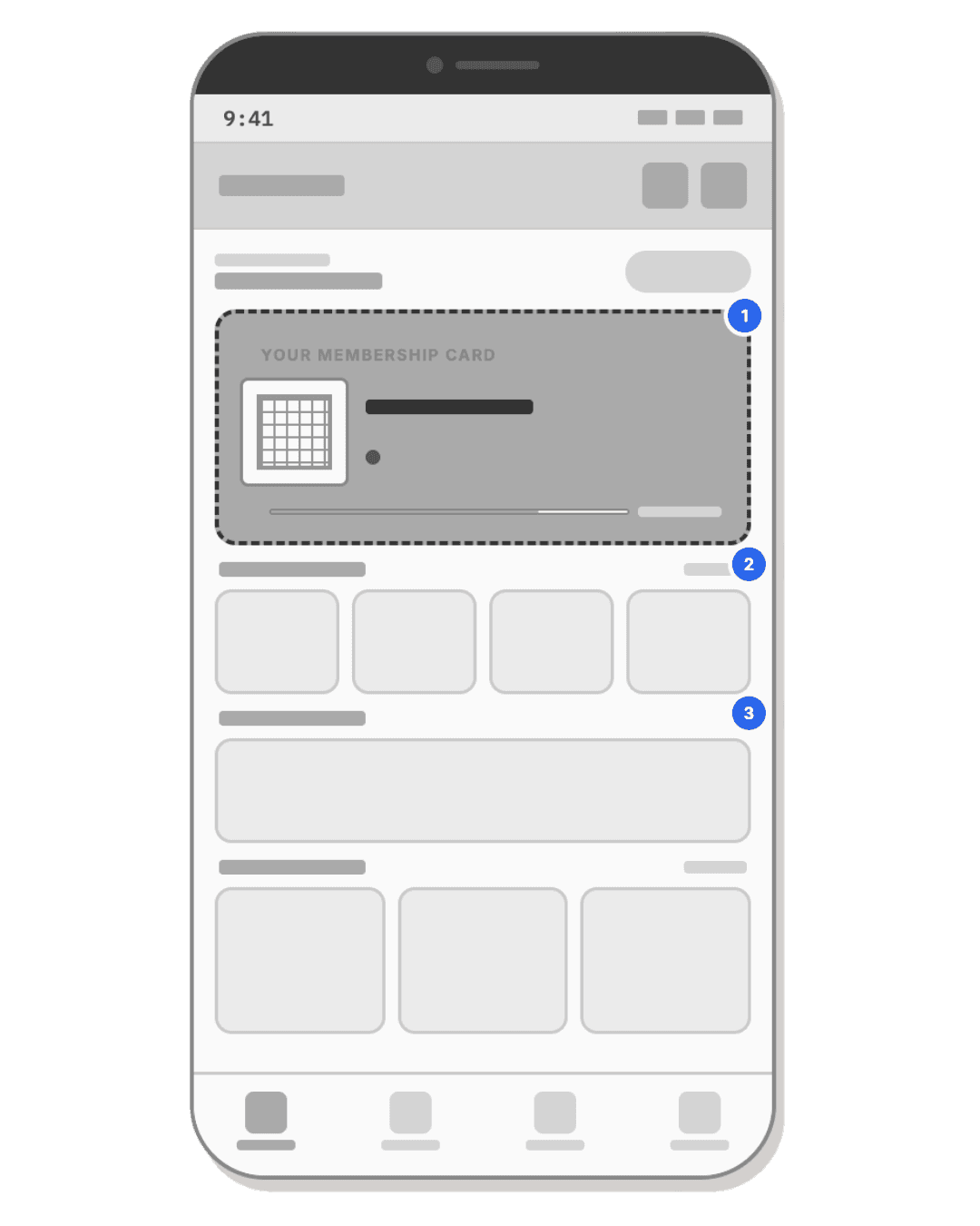 The homepage prioritizes promotional content over the member's actual intent. Every extra tap happens while standing at an entrance with people waiting behind them.