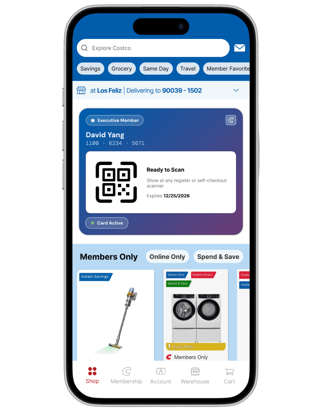 Costco's app, redesigned for real user intent by prioritizing membership QR code accessibility and a modernized UI that reflects how members shop today.