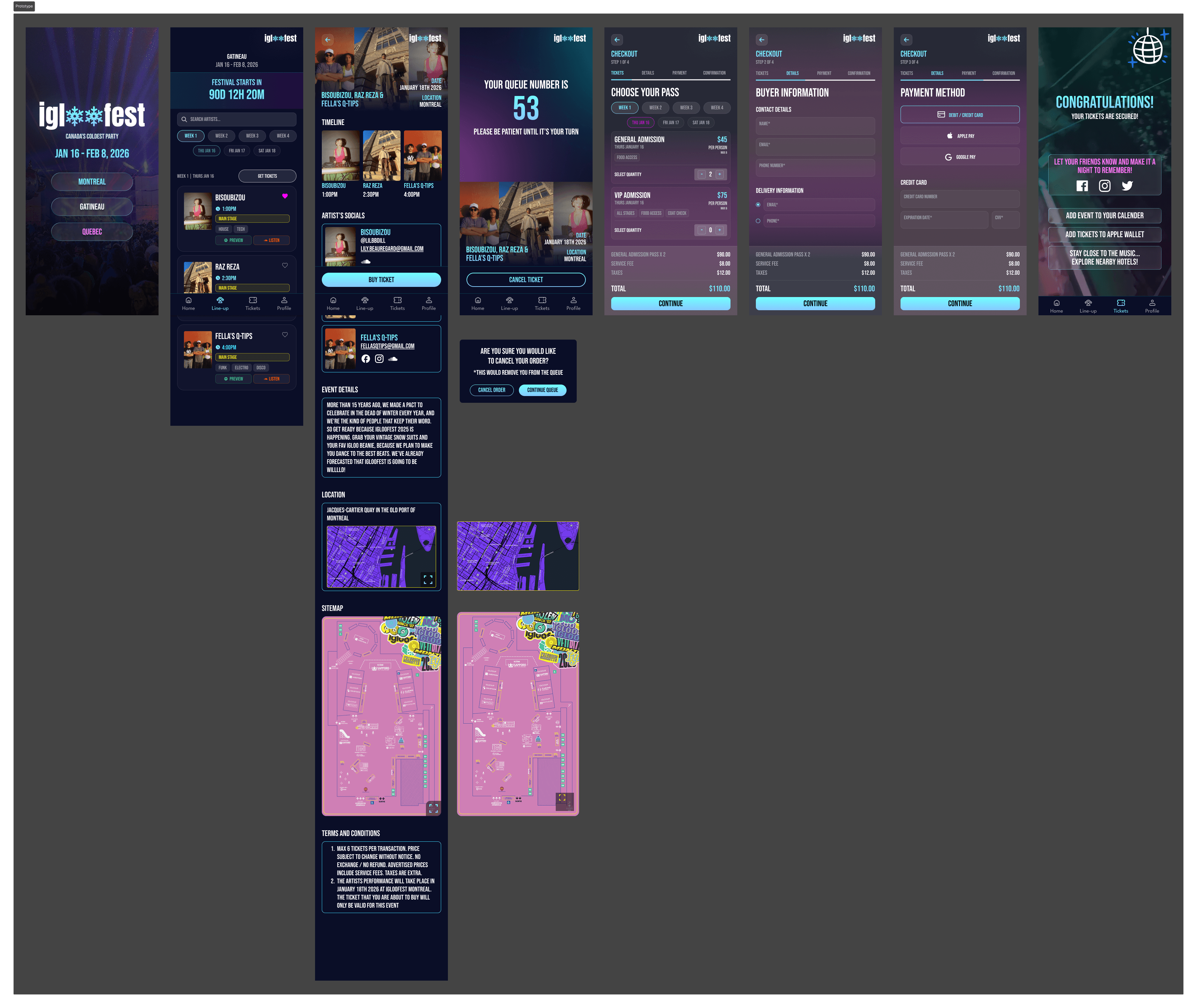How might we help Igloofest attendees easily discover, plan, and book their festival experience in one seamless mobile flow while maintaining brand identity?