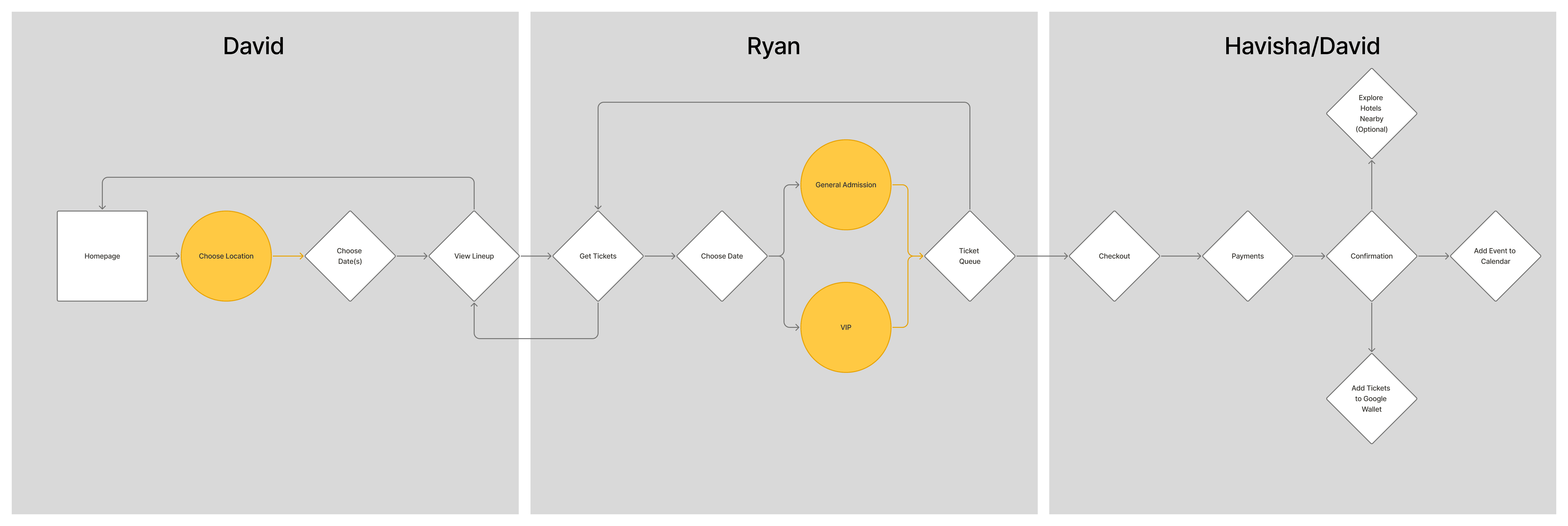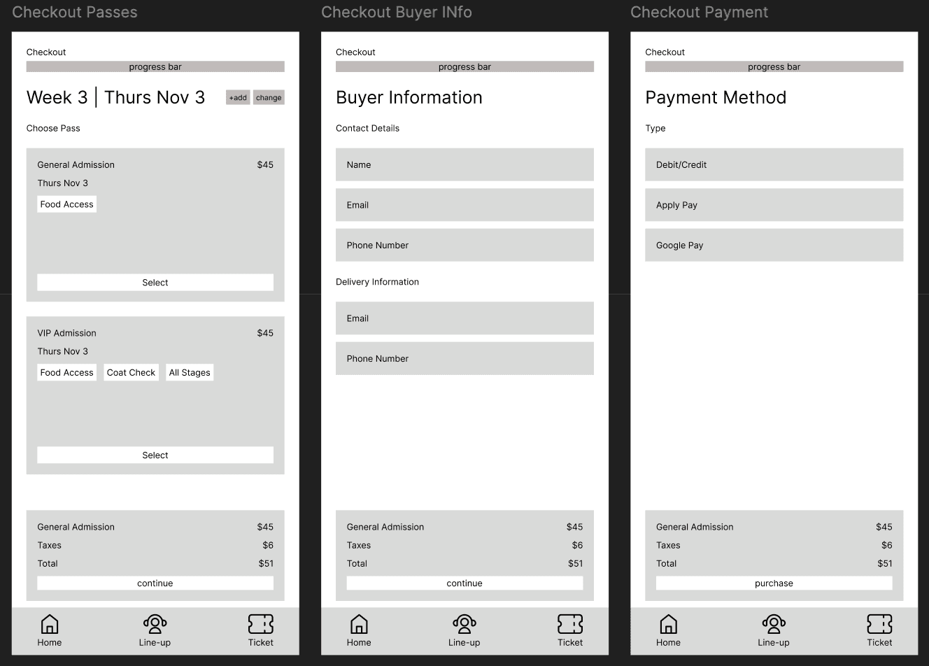 After splitting the work, I began by designing a simple, low-friction live digital ticket purchasing experience for the core user story.